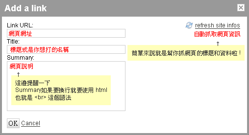 然後點一下 "add" 來進行新增網頁捷徑的動作